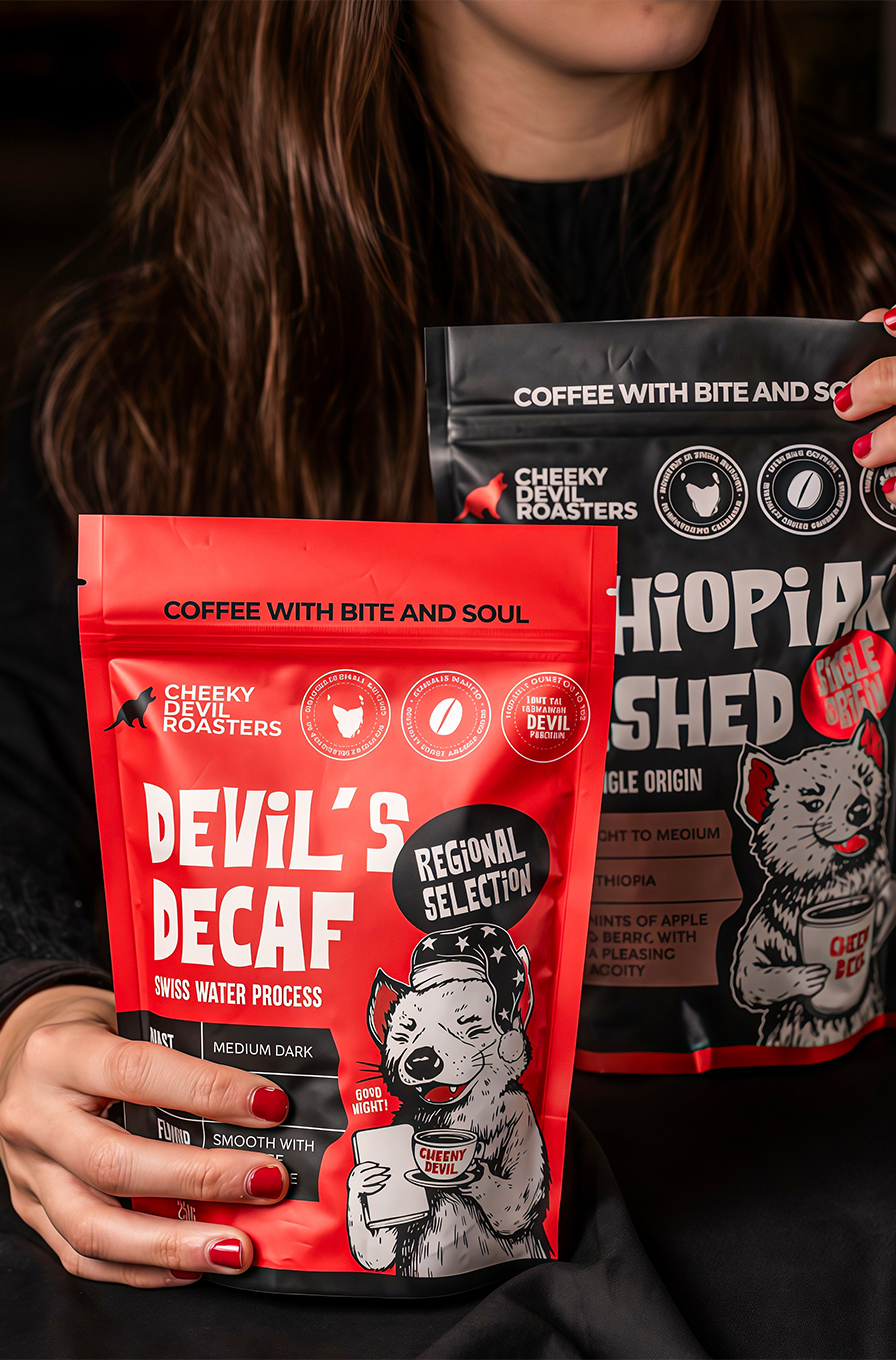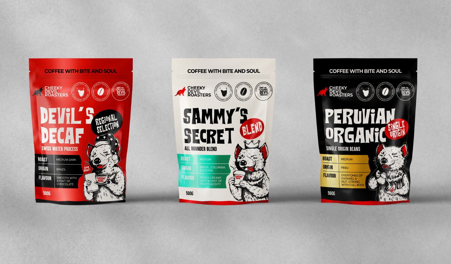 Meet Clive and Robyn—the passionate duo behind Cheeky Devil Roasters. What started as a small coffee roasting operation soon became a heartfelt expression of family values. Each coffee blend carries the name of one of their children “Secret Sammy”, “Naughty Nathan”, creating an intimate connection between their product and the joy of everyday family life. But as the business grew, so did the need for packaging that matched their story, energy, and cheeky personality.