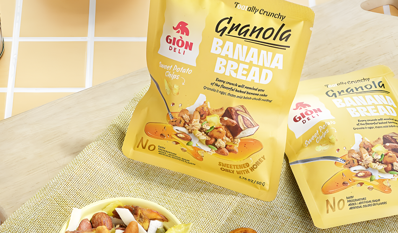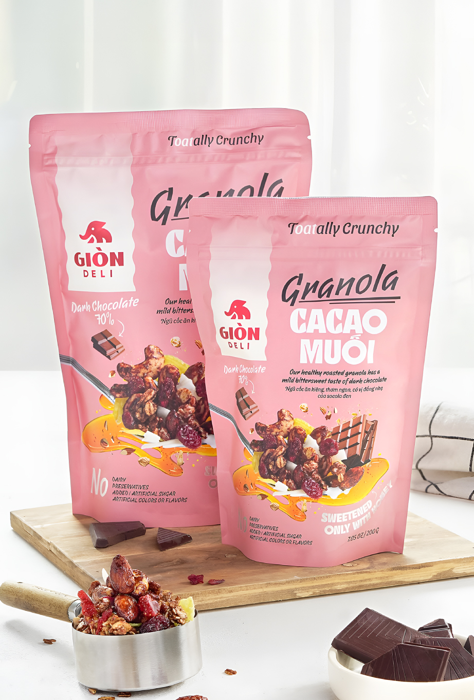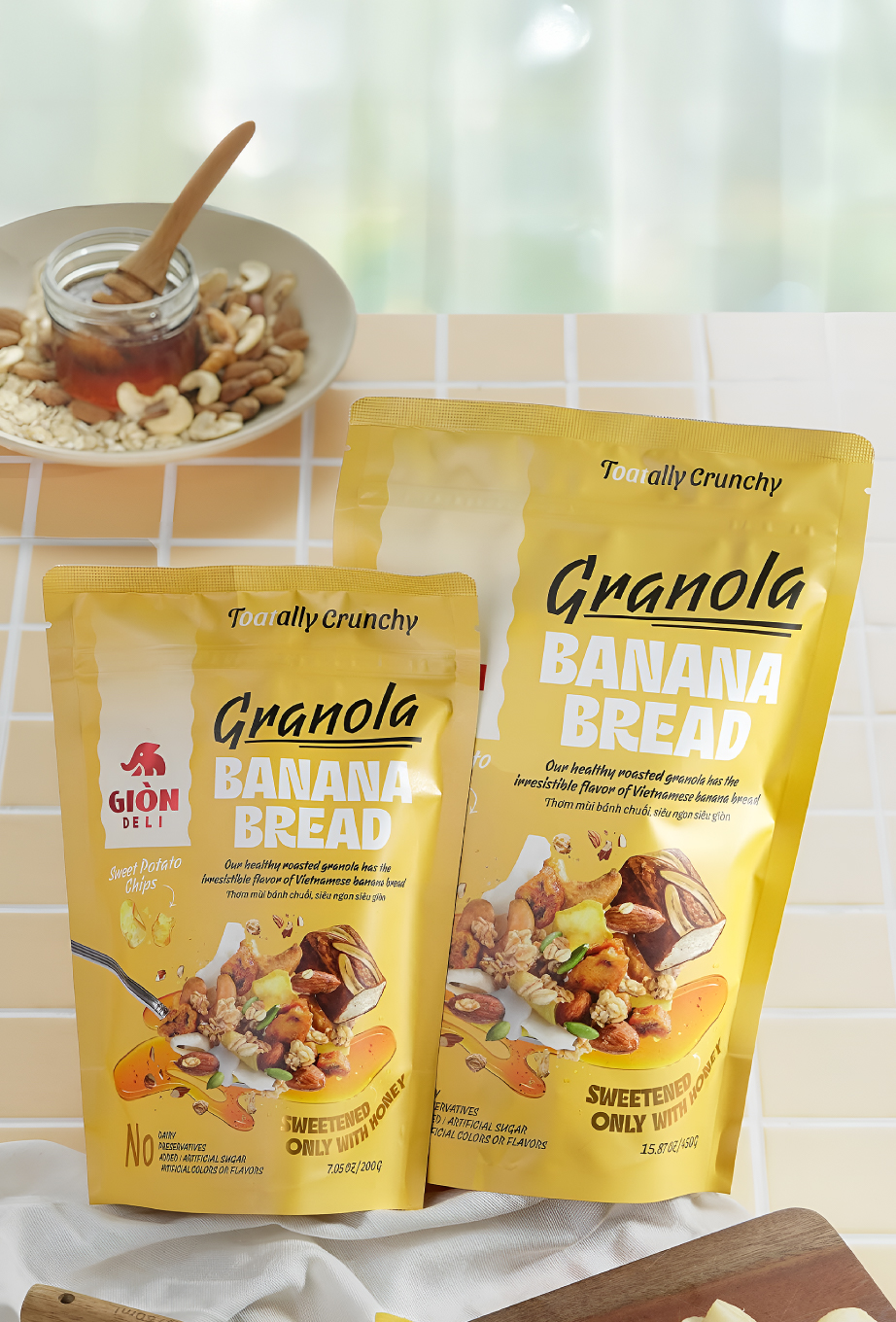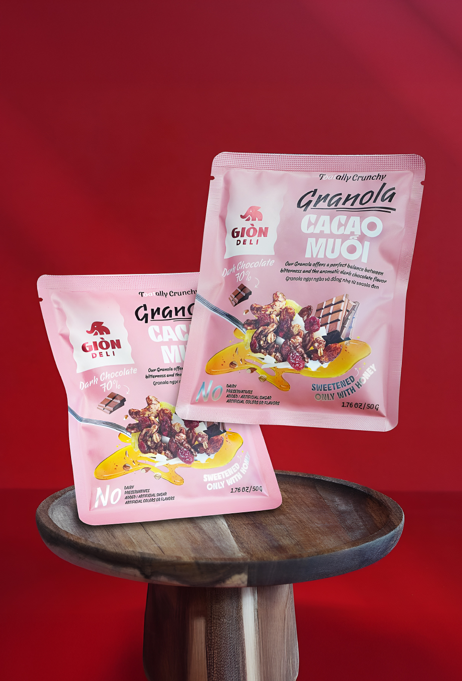 Giòn Deli was founded by a passionate group of young Vietnamese committed to making healthy food exciting. Their granola products, made with high-quality ingredients and natural flavours, gained local traction—but the packaging fell short.