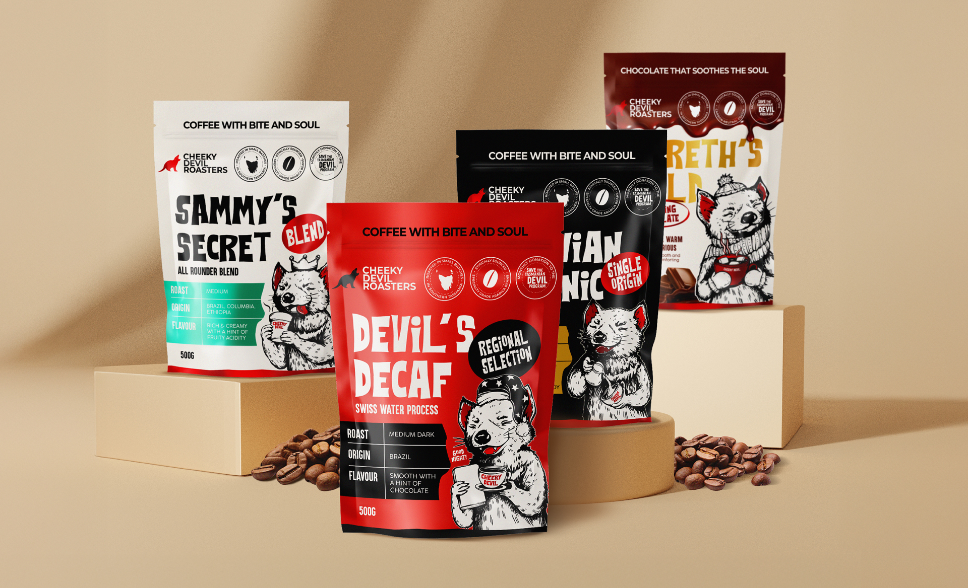 Cheeky Devil Coffee Roaster Rebrand: Bold Packaging Makeover
