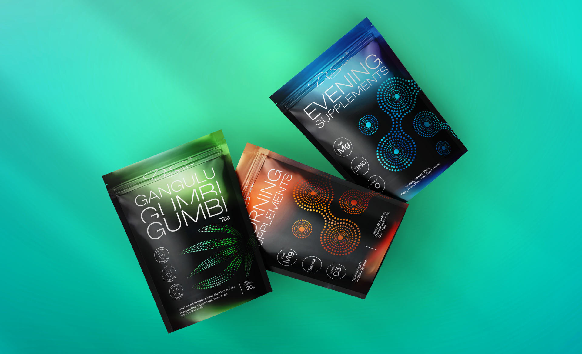 Many supplements on the market follow a sporty, gym-heavy look. However, that wasn’t the story Dr Sam wanted to tell. Instead, she wanted something premium yet grounded, clinical yet personal, and compliant with Australia’s strict TGA regulations. At the same time, the design needed to feel intelligent and connected to her Indigenous background, without being overly flashy and cold.