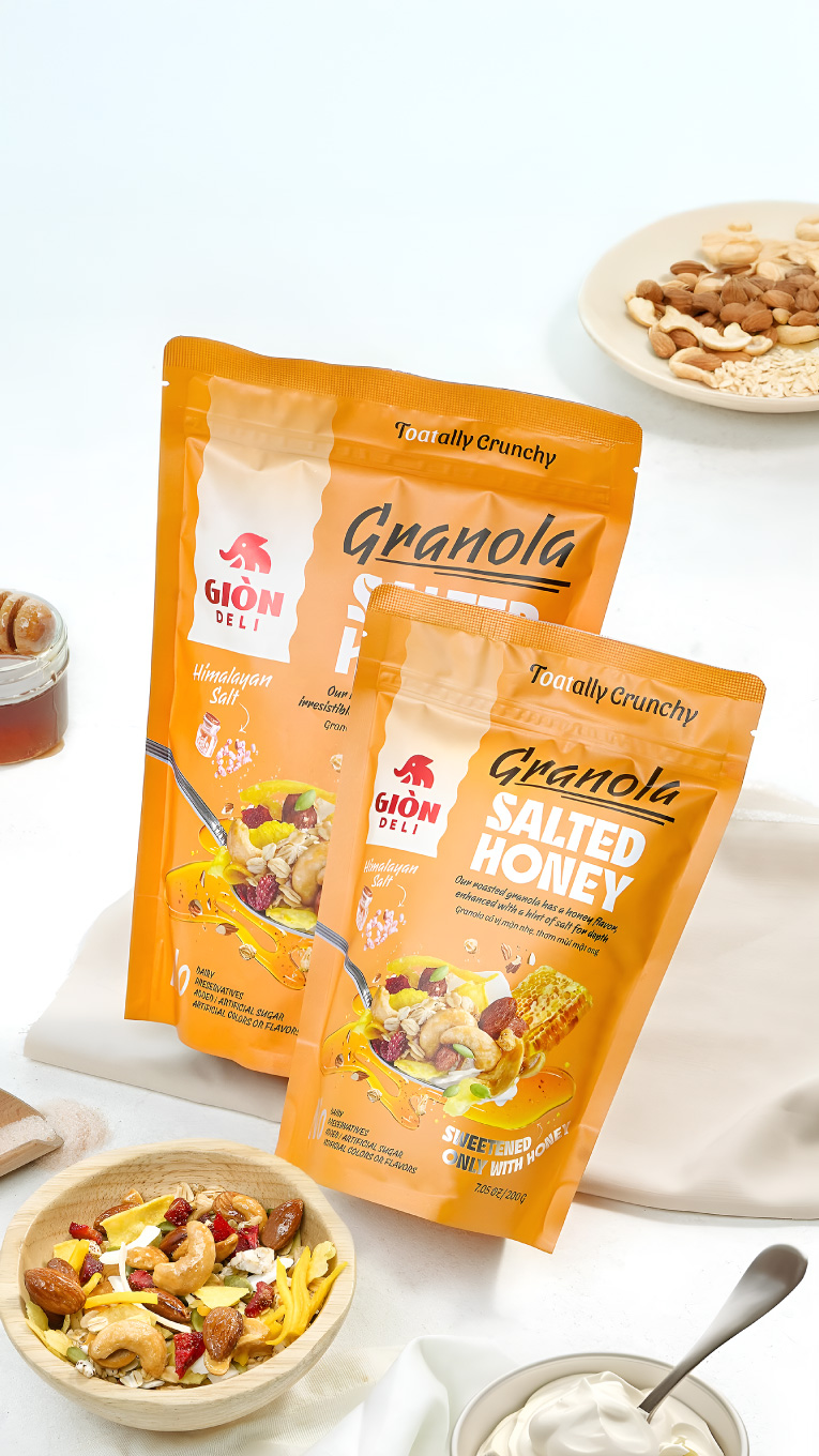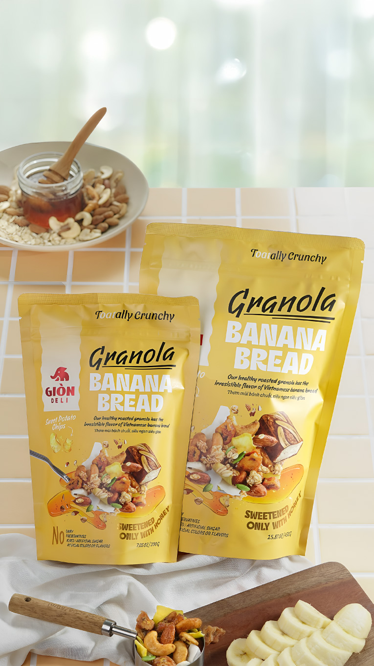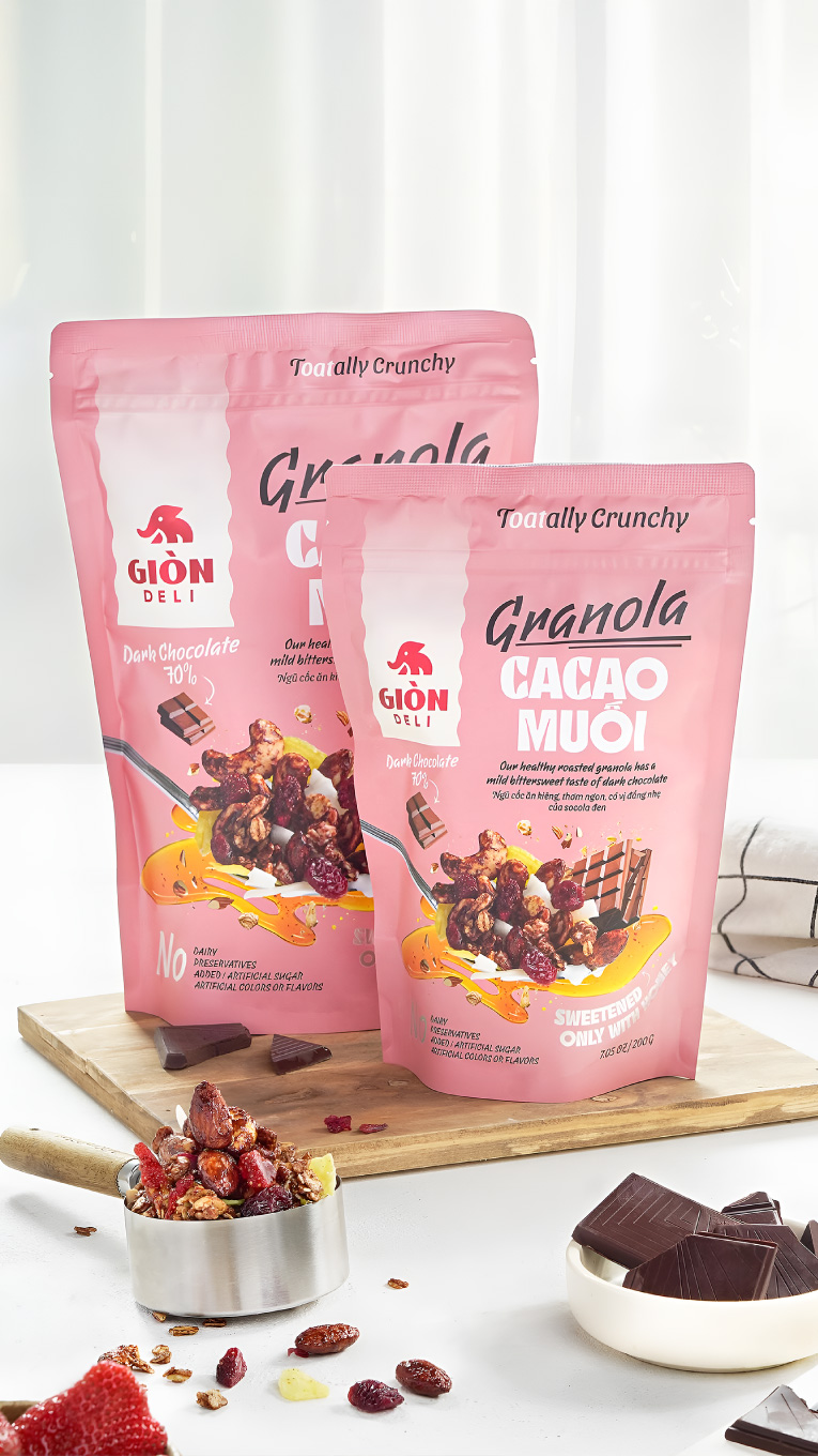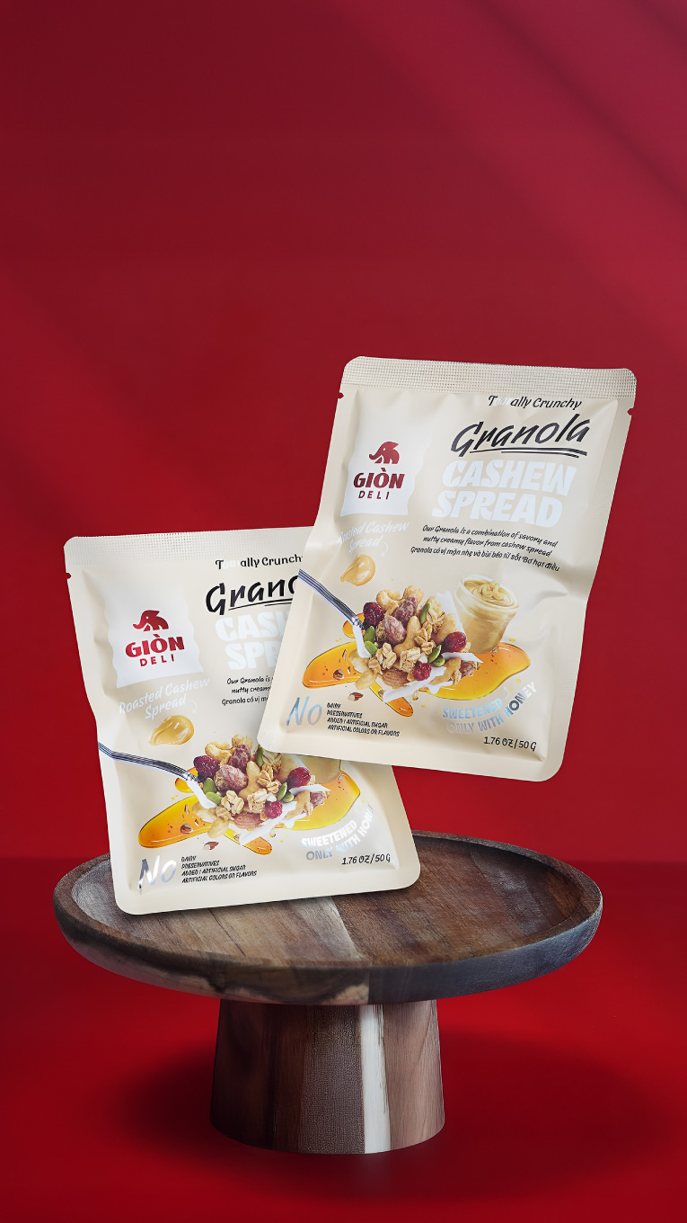 Giòn Deli was founded by a passionate group of young Vietnamese committed to making healthy food exciting. Their granola products, made with high-quality ingredients and natural flavours, gained local traction—but the packaging fell short.