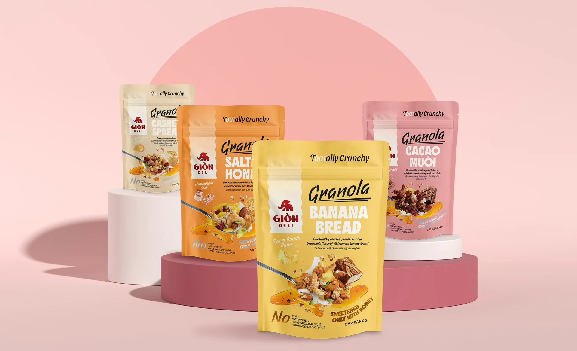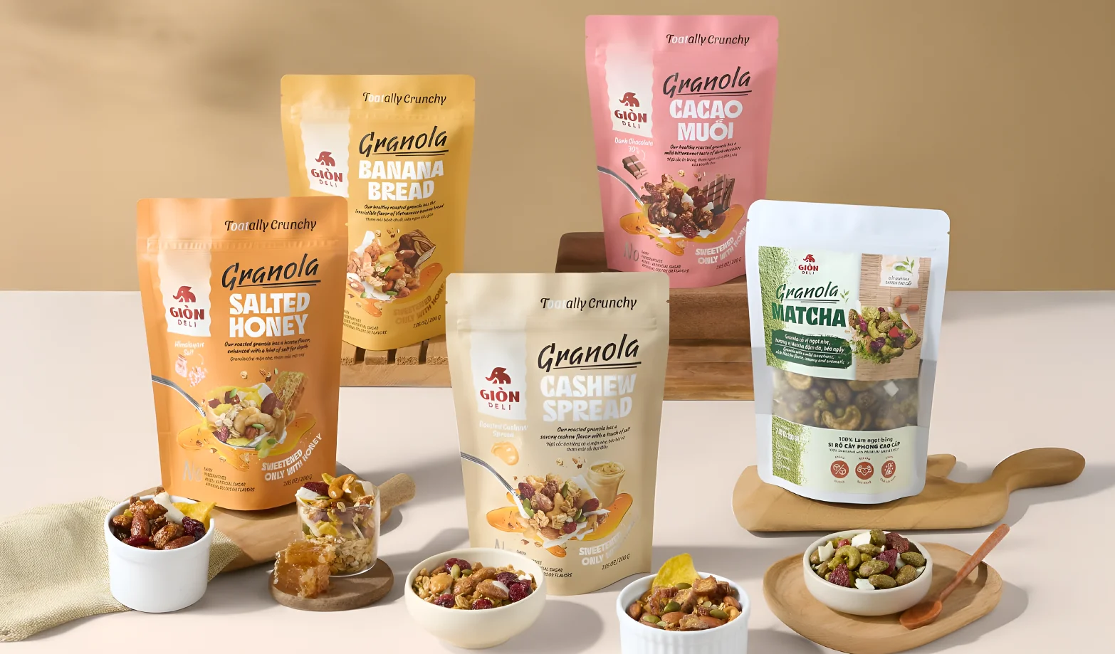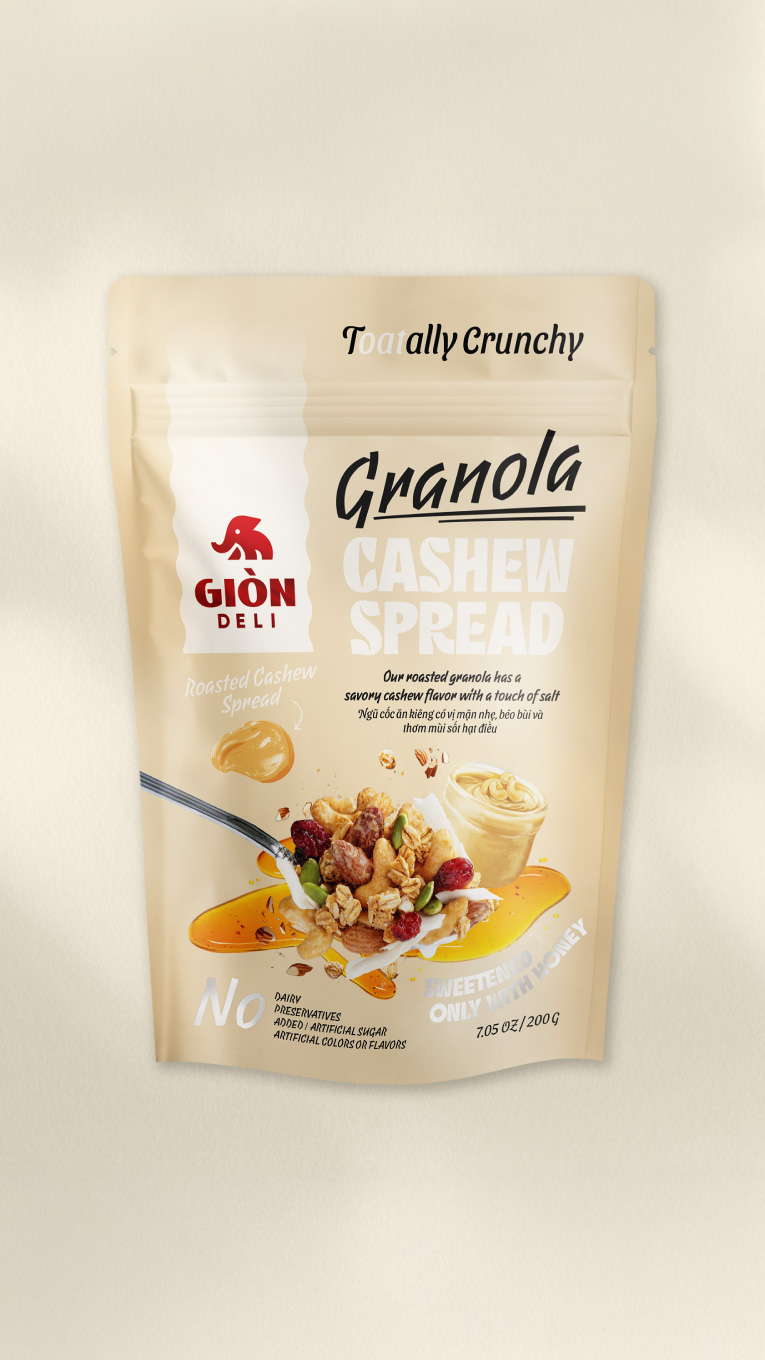 Giòn Deli was founded by a passionate group of young Vietnamese committed to making healthy food exciting. Their granola products, made with high-quality ingredients and natural flavours, gained local traction—but the packaging fell short.